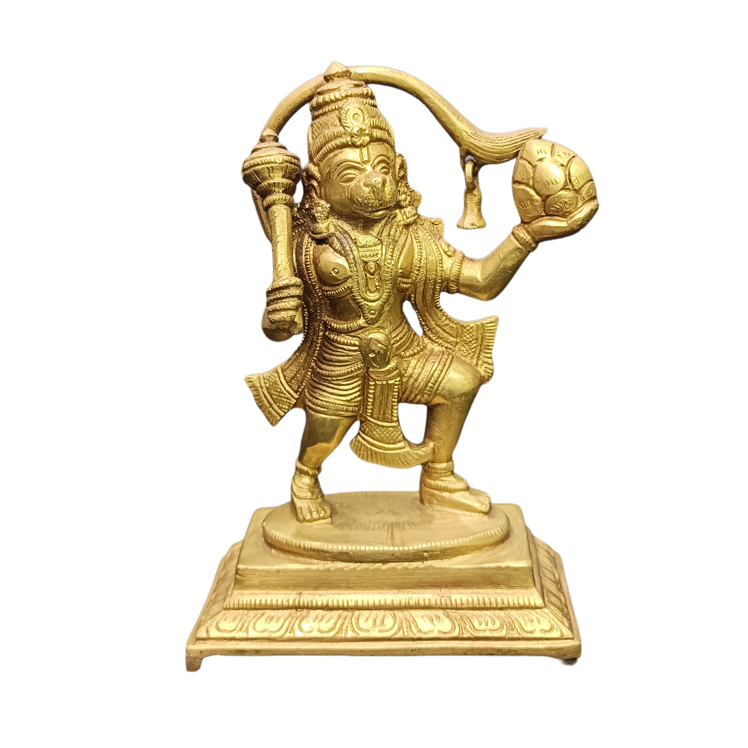 Invoke the divine might and unwavering devotion of Lord Hanuman with this exquisitely handmade brass idol, masterfully depicting him in a standing posture holding the Sanjeevani mountain. A timeless symbol of strength, courage, and selfless service, this sacred piece radiates powerful spiritual energy and protection. Crafted from premium quality brass with intricate detailing, it ensures both durability and a lasting divine presence. Ideal for pooja, spiritual corners, or thoughtful gifting, this idol brings blessings of healing, valor, and positivity into any space. Let Lord Hanuman’s heroic spirit fill your home with faith, peace, and divine grace.