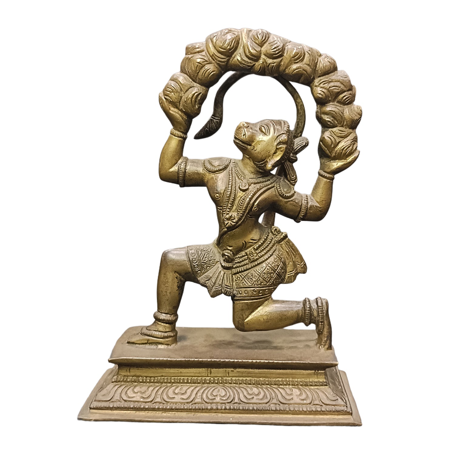 Embrace the divine strength and devotion of Lord Hanuman with this beautifully handmade brass idol, depicting him standing while carrying the Sanjeevani mountain. A powerful symbol of faith, courage, and selfless service, this intricately crafted piece radiates spiritual energy and protection. Made from premium quality brass, it ensures durability and a timeless presence. Perfect for pooja, home decor, or gifting, this idol brings blessings, strength, and positivity to any space.