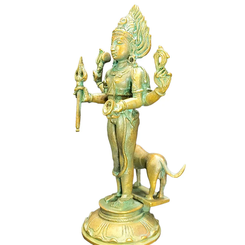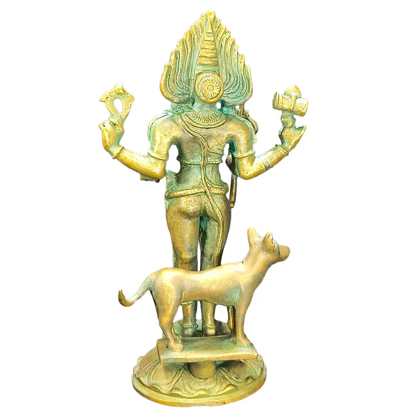 Bhairavar, the divine protector of devotees, watches over those who seek his grace. This beautifully handcrafted bronze idol is a true testament to devotion, precision, and sacred craftsmanship. Created using the lost-wax casting technique, it ensures intricate detailing, preserving the fierce yet divine essence of Bhairava. The panchaloha composition enhances its spiritual energy, making it a powerful symbol of protection and inner strength. Ideal for homes, temples, and sacred spaces, this idol blesses devotees with fearlessness, success, and unwavering faith.