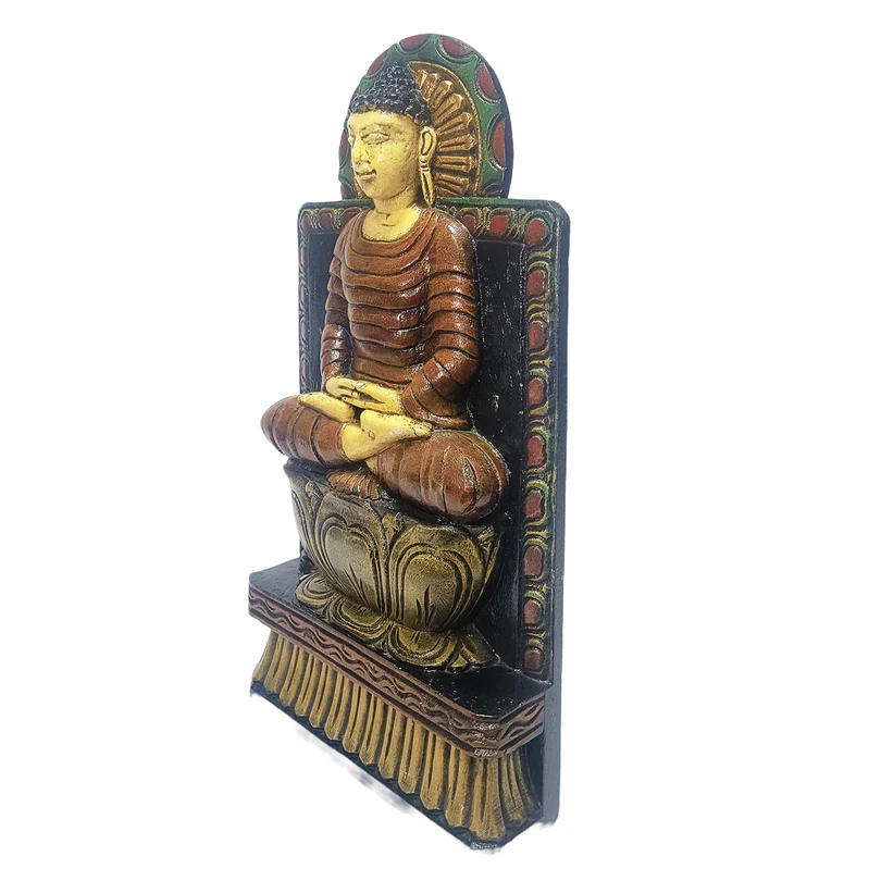 Invite serenity and spiritual calm into your space with this beautifully handmade wooden Buddha idol, adorned with vibrant colors. Depicting Lord Buddha in a peaceful and meditative posture, this sculpture symbolizes enlightenment, inner peace, and mindfulness. Crafted by skilled artisans, the colorful finish enhances the spiritual essence and artistic beauty of the piece. Perfect for meditation rooms, home decor, or thoughtful gifting, this wooden Buddha idol brings a sense of tranquility and sacred charm to any environment.