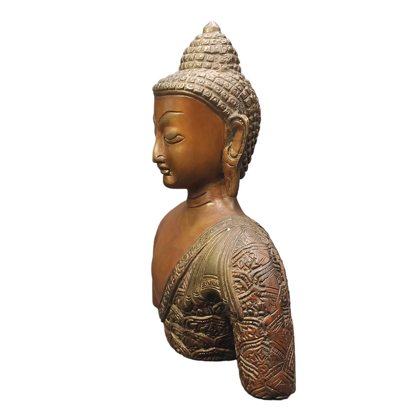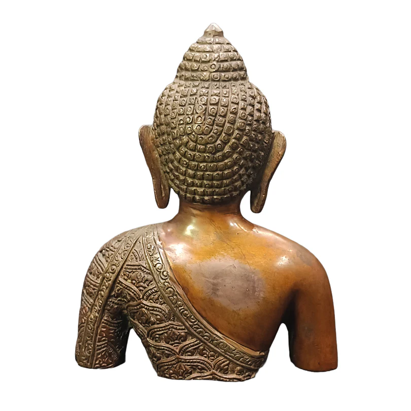 The Handmade Brass Buddha Half Body idol is a refined and elegant representation of Lord Buddha, capturing his peaceful essence and meditative presence in a minimalist half-body form. Crafted from high-quality brass using traditional techniques, this sculpture features delicate detailing in Buddhas serene facial expression, textured hair curls, and graceful posture. The half-body design symbolizes inner stillness, mindfulness, and spiritual focus, making it a perfect piece for modern spiritual spaces. Offered by Cholan Arts Emporium, this unique idol is ideal for home decor, meditation corners, or workspaces, bringing a sense of calm, balance, and enlightened energy to any environment.