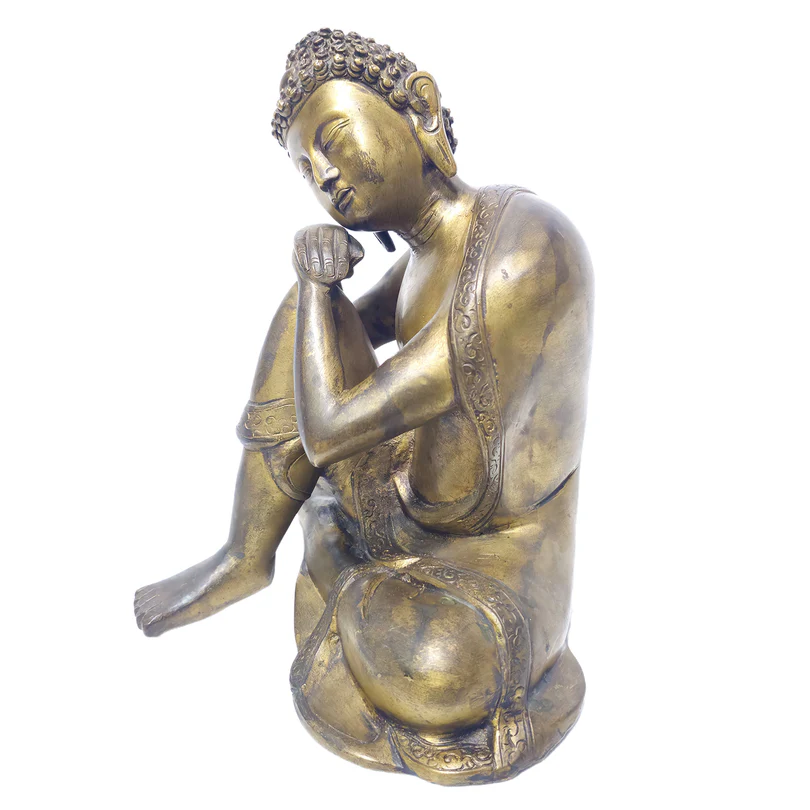 The Handmade Brass Buddha Relaxing idol is a serene and peaceful depiction of Lord Buddha in a relaxed reclining posture, symbolizing inner peace, contentment, and enlightenment. Crafted from premium-quality brass, this beautifully detailed idol captures Buddhas calm expression and graceful form, embodying the essence of tranquili ty and spiritual relaxation. As a unique creation from Cholan Arts Emporium, it reflects traditional craftsmanship, making it an ideal addition to home altars, meditation spaces, or as a thoughtful gift. This high-quality piece invites a sense of calm, balance, and divine energy into any sacred or living space.
