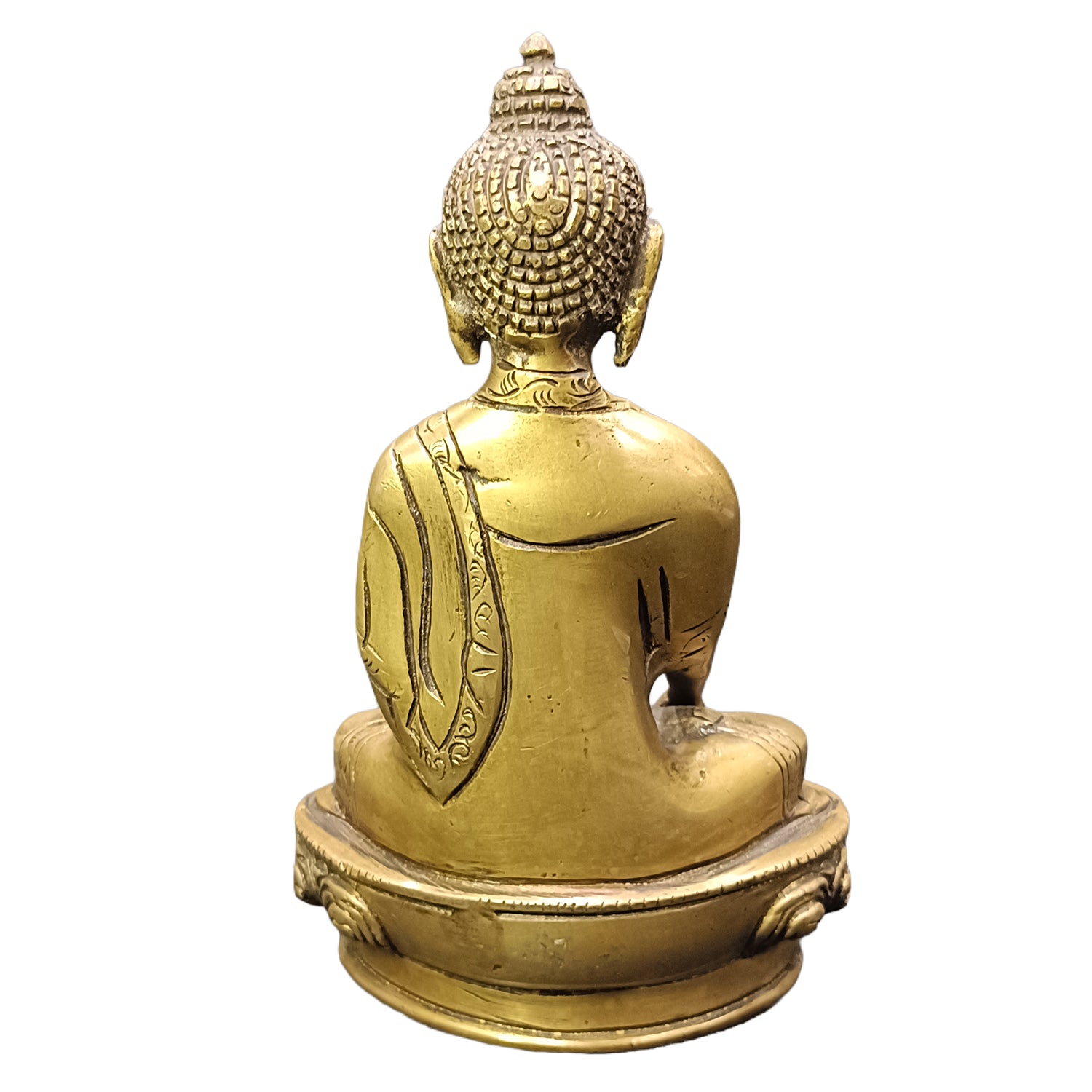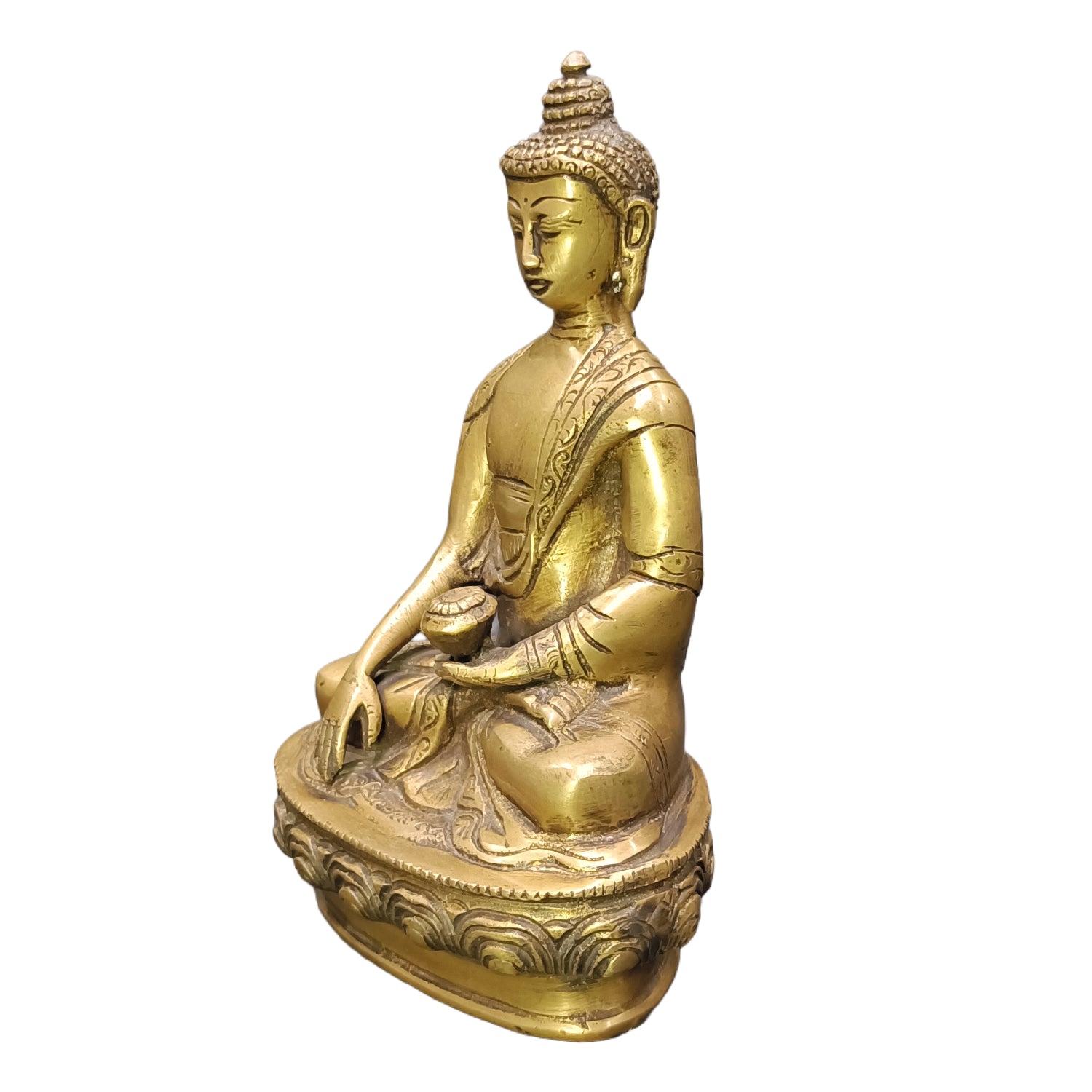 The Handmade Brass Buddha Sitting (Brass Colour) idol is a graceful and serene depiction of Lord Buddha, representing peace, mindfulness, and spiritual awakening. Crafted from high-quality brass with a classic polished finish, this idol highlights the intricate detailing of Buddha's calm expression, flowing robes, and meditative posture. Seated in the Dhyana Mudra, symbolizing deep contemplation and balance, it serves as a timeless symbol of inner harmony and enlightenment. A refined piece from Cholan Arts Emporium, this idol is perfect for home altars, meditation spaces, yoga studios, or as a meaningful decorative piece, offering an atmosphere of tranquility and spiritual presence to any environment.