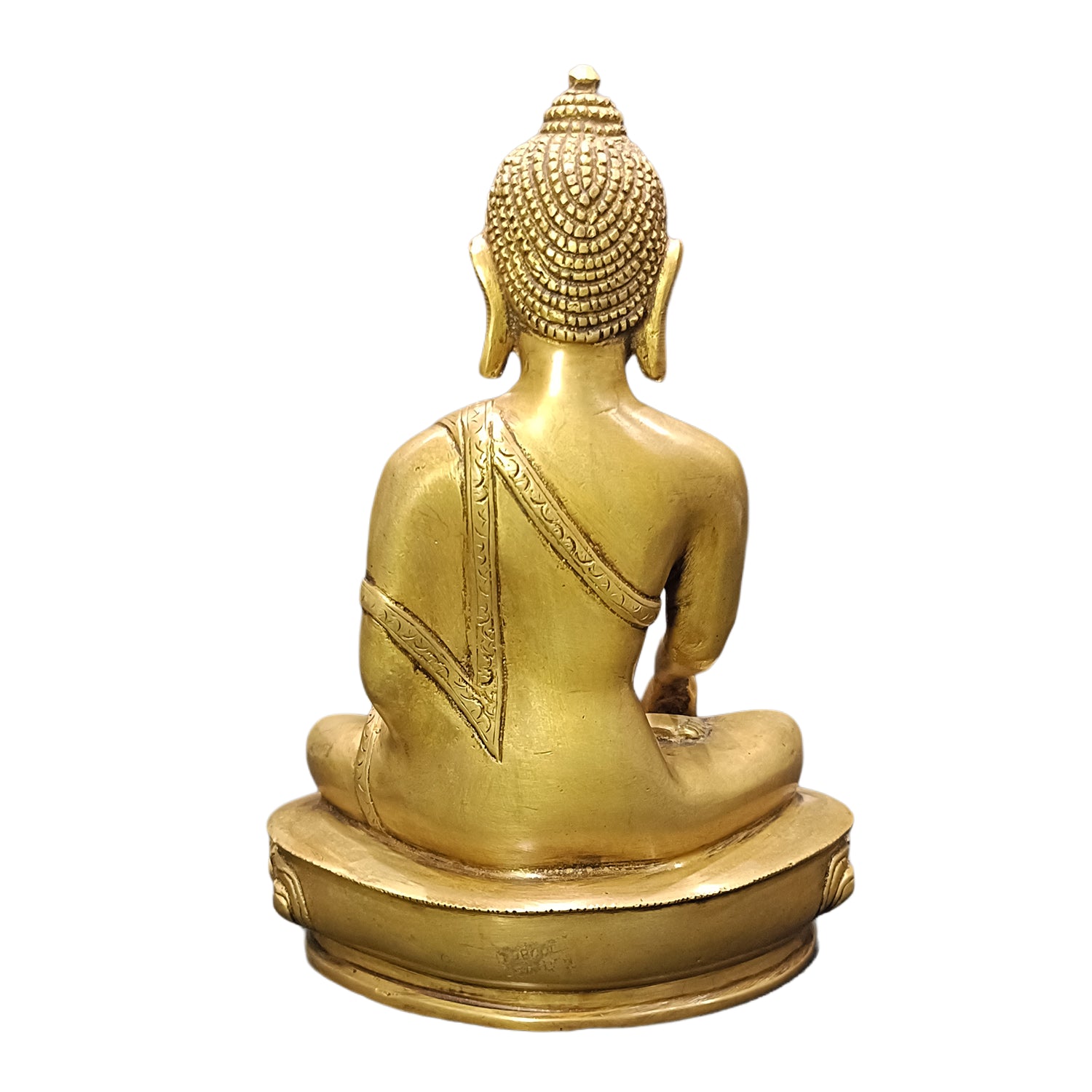 The Handmade Brass Buddha Sitting (Brass Colour) idol is a timeless representation of Lord Buddha's serenity, wisdom, and enlightenment. Crafted from pure high-quality brass, this sculpture features a natural brass finish that highlights the refined detailing of Buddha's peaceful expression, flowing robes, and meditative posture. Seated in the Dhyana Mudra, symbolizing inner peace and focused meditation, this idol radiates tranquility and spiritual energy. A fine example of traditional craftsmanship from Cholan Arts Emporium, it is ideal for home altars, meditation rooms, or as an elegant decor piece, creating a space of calmness, mindfulness, and sacred presence.