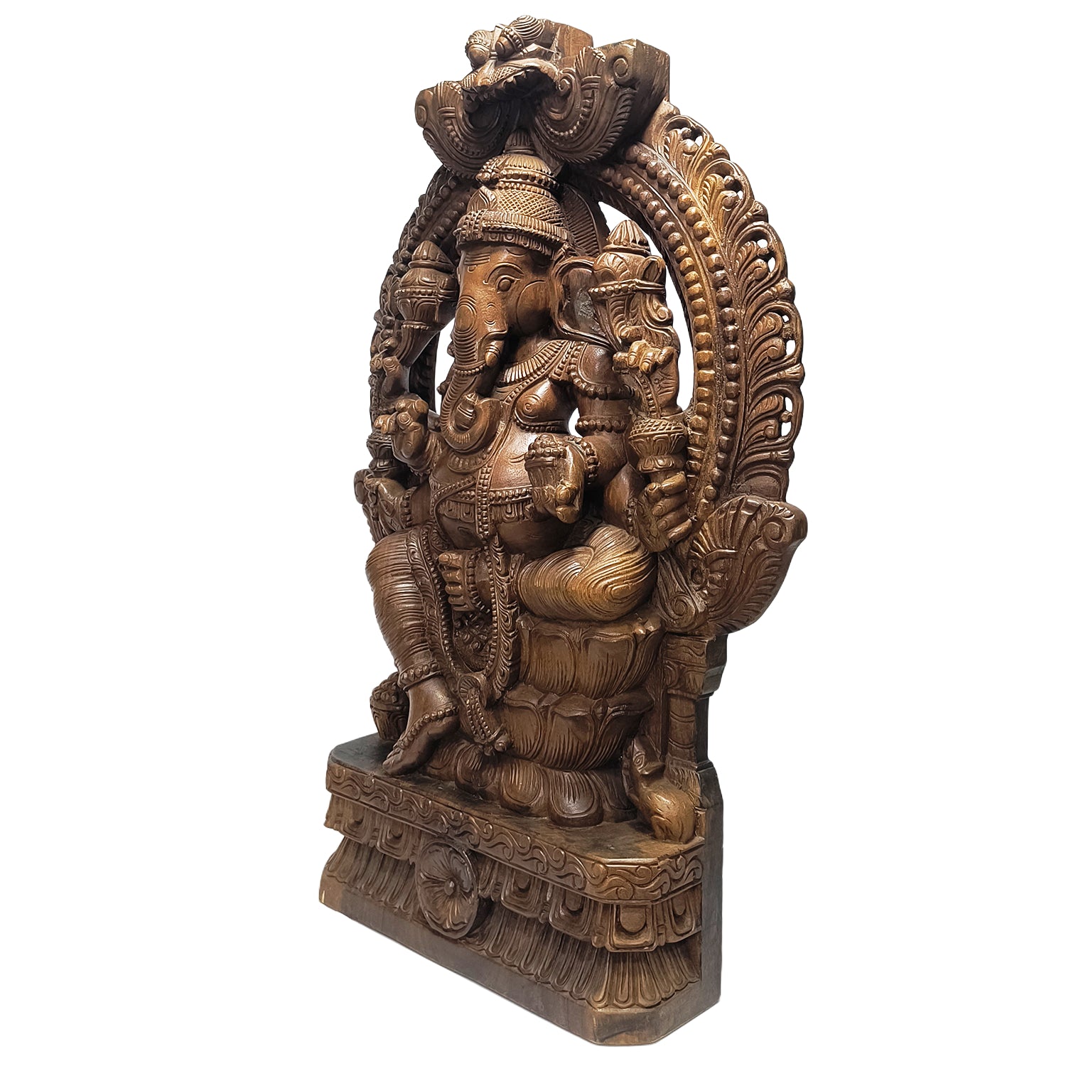 Bring home divine blessings with this elegant Ganesh With Arch idol, beautifully handmade in wood with a plain, natural finish. Featuring Lord Ganesha seated beneath a traditionally carved arch, this sculpture symbolizes auspicious beginnings, wisdom, and protection. The unpainted finish highlights the natural beauty of the wood and the fine craftsmanship of skilled artisans. Perfect for pooja rooms, meditation spaces, or minimalist decor, this wooden idol adds a serene and sacred touch to any setting.