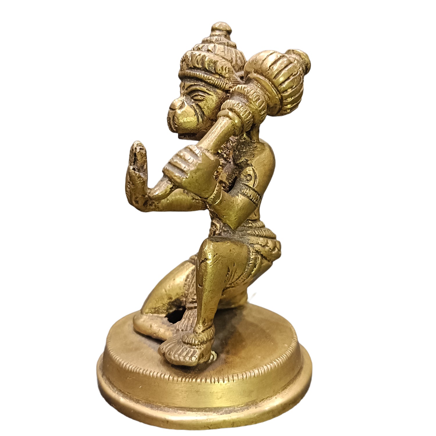 Invite the divine presence of Lord Hanuman with this beautifully handmade brass idol, intricately designed in a sitting posture. A symbol of strength, devotion, and wisdom, this sacred piece radiates spiritual energy and protection. Crafted from premium quality brass, it ensures durability and a timeless presence. Perfect for pooja, home decor, or gifting, this idol brings courage, blessings, and positivity to any space.
