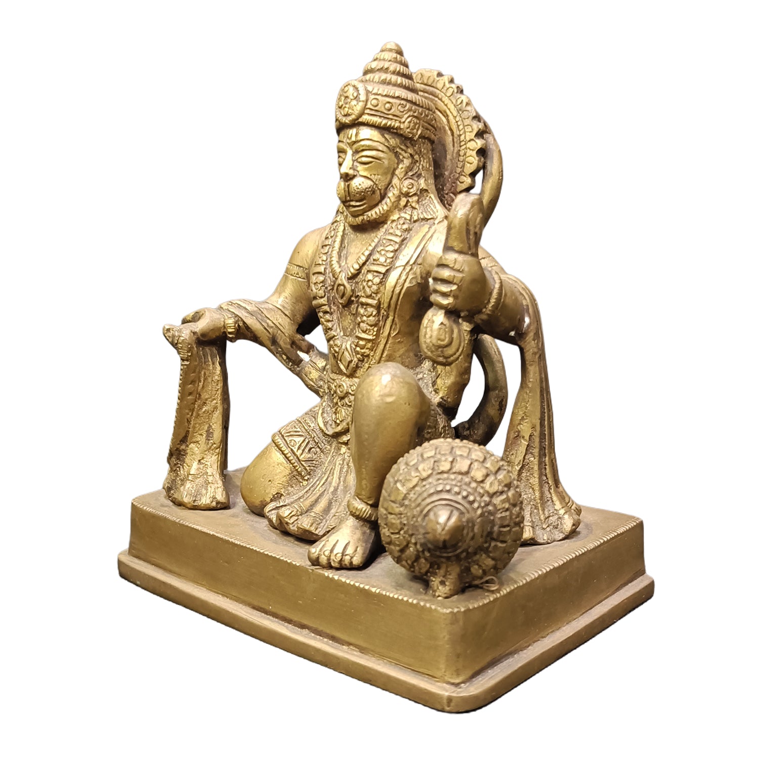 Embrace the divine strength and devotion of Lord Hanuman with this exquisitely handmade brass idol, intricately crafted in a sitting posture. Representing courage, wisdom, and unwavering faith, this sacred piece radiates spiritual energy and protection. Made from premium quality brass, it ensures durability and a timeless presence. Perfect for pooja, home decor, or gifting, this idol brings divine blessings, strength, and positivity to any space.