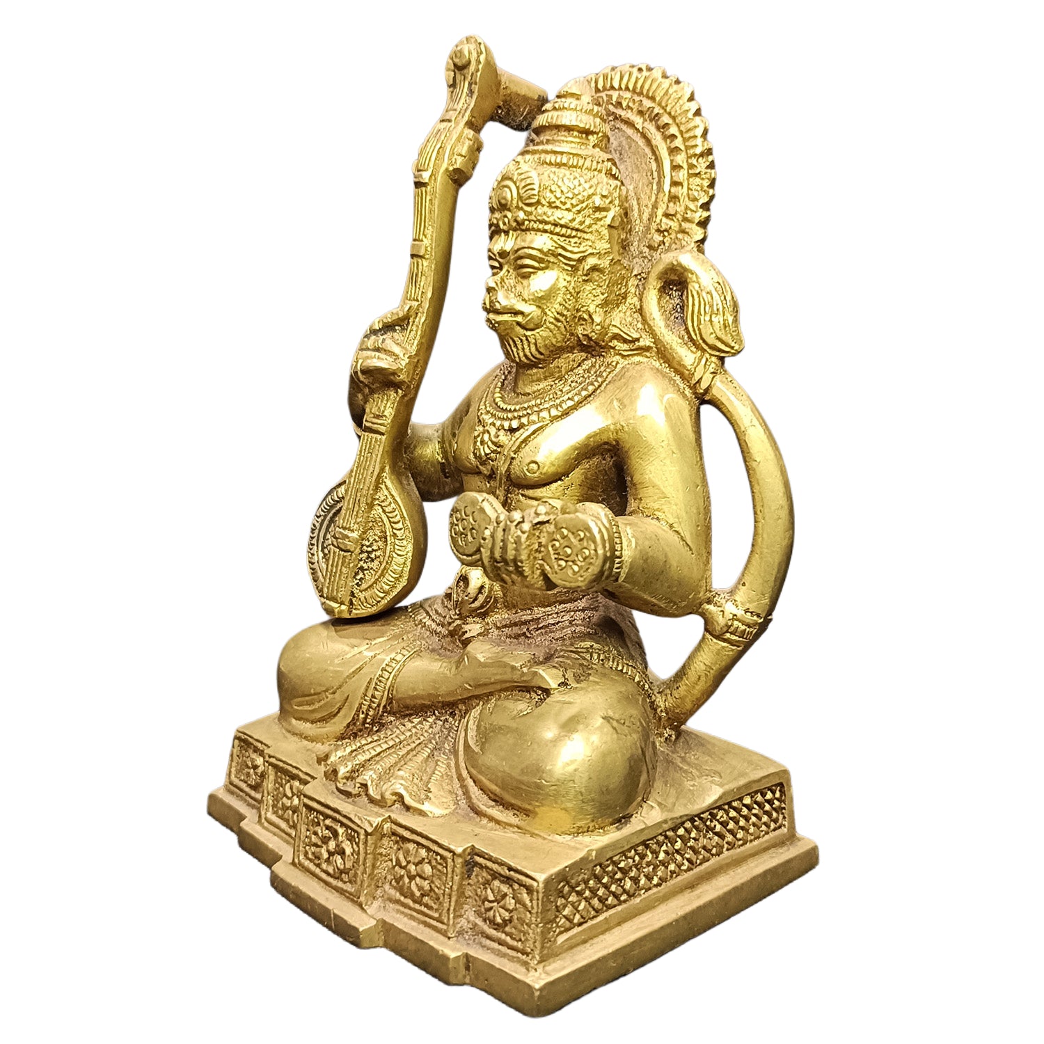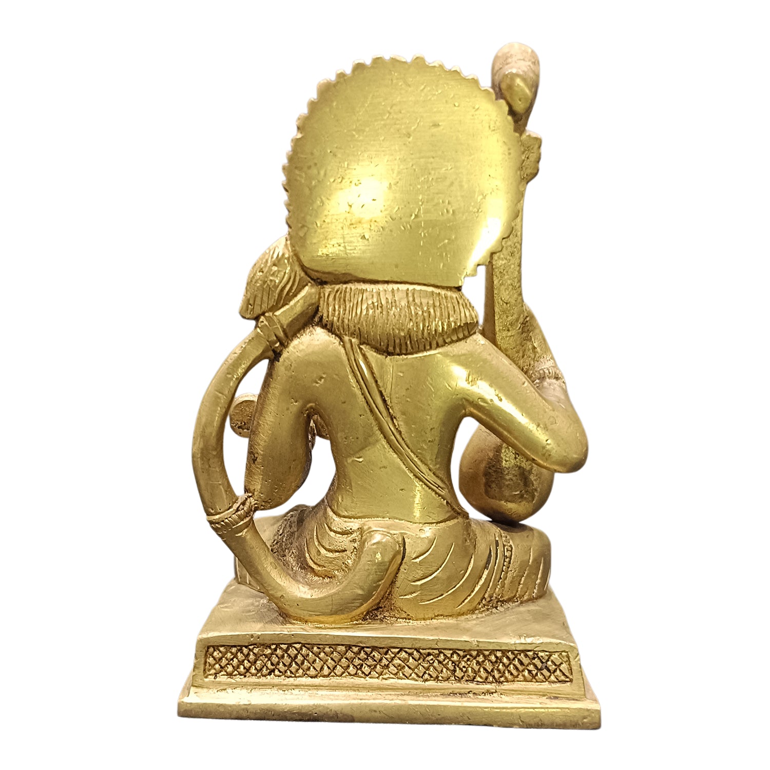 Adorn your space with the sacred presence of Lord Hanuman through this exquisitely handmade brass idol, finished in an elegant antique tone. Depicted in a serene seated posture, playing a divine musical instrument, this unique form symbolizes devotion, wisdom, and spiritual harmony. The antique detailing adds a timeless aura, enhancing its spiritual and artistic value. Crafted from premium quality brass, it promises durability and an everlasting divine presence. Perfect for pooja rooms, meditative spaces, or thoughtful gifting, this idol radiates strength, serenity, and soulful blessings, infusing any space with the uplifting energy of Lord Hanuman's unwavering devotion.
