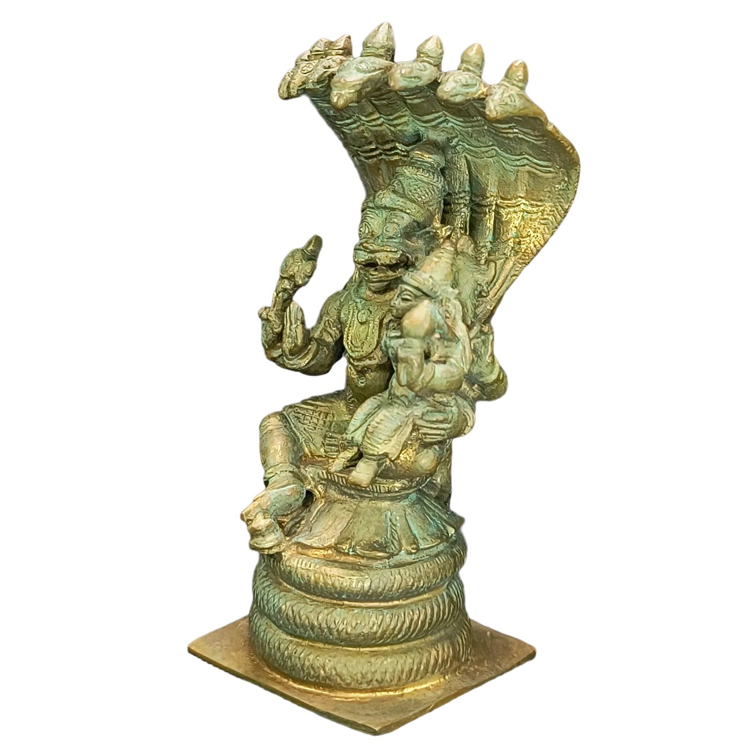 Experience the divine power and grace of Lakshmi Narasimha, the sacred union of Lord Narasimha, the fierce protector, and Goddess Lakshmi, the bestower of prosperity and well-being. This Handmade Bronze Lakshmi Narasimha idol embodies strength, compassion, and divine blessings, offering protection and abundance to devotees. Crafted using the traditional lost-wax casting technique, this masterpiece features intricate detailing, from Narasimha’s majestic presence to Lakshmi’s serene and benevolent posture. Made from high-quality panchaloha (five-metal alloy), this idol is perfect for temples, home altars, or spiritual spaces, bringing protection, prosperity, and divine grace into your sacred surroundings.