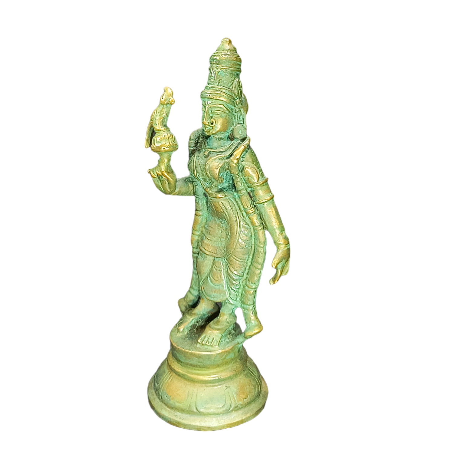Invite the divine presence of Meenakshi Amman, the powerful and compassionate goddess of Madurai, with this Handmade Bronze Meenakshi Amman idol. Revered as an incarnation of Goddess Parvati, Meenakshi symbolizes strength, wisdom, and prosperity, blessing her devotees with protection, success, and spiritual growth. Crafted using the traditional lost-wax casting technique, this exquisite sculpture showcases intricate detailing, from her royal adornments to her commanding yet graceful posture. Made from high-quality panchaloha (five-metal alloy), this idol is a perfect addition to temples, home altars, and meditation spaces, bringing divine grace, courage, and harmony into your life.