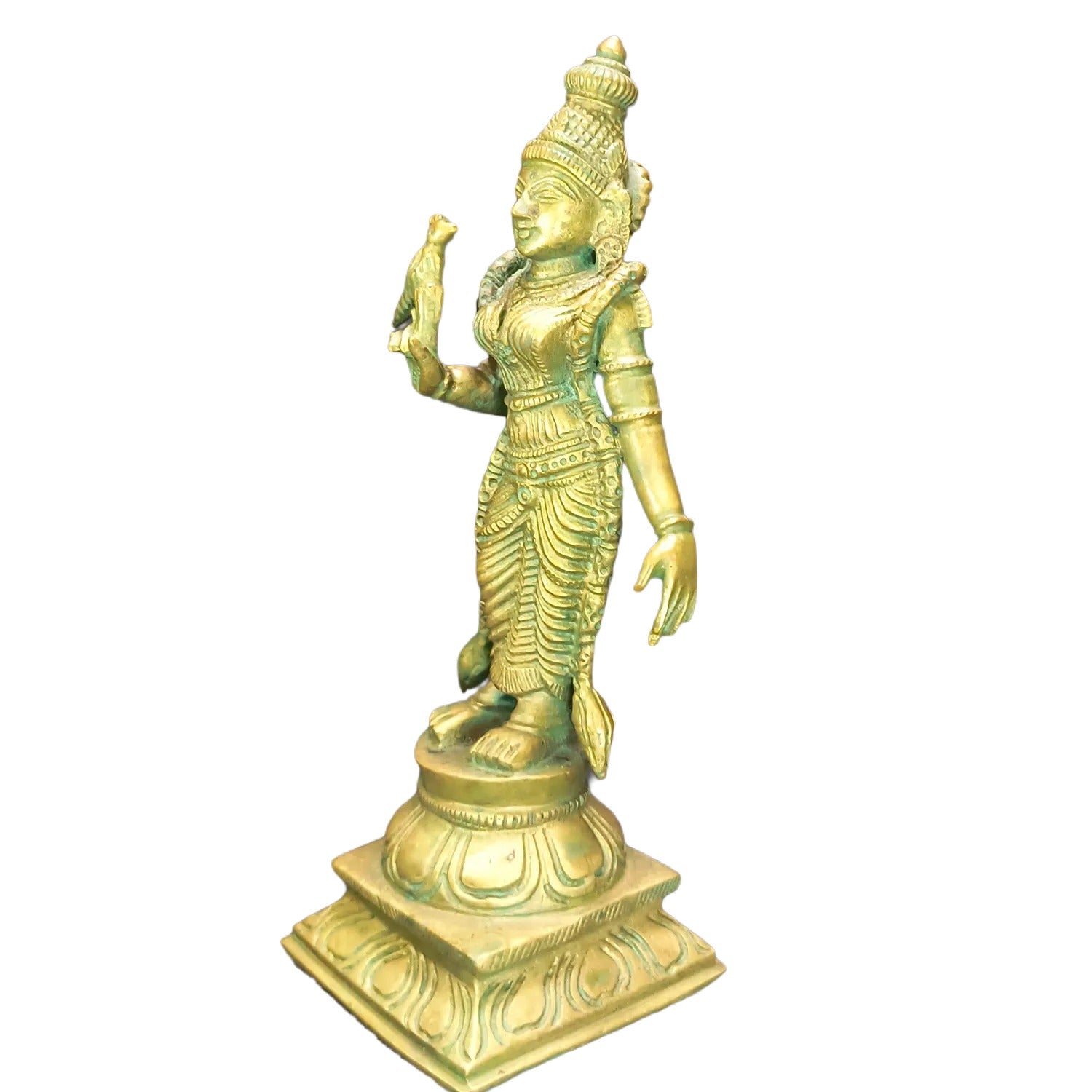 Meticulously handcrafted with premium panchaloha, this Handmade Bronze Meenakshi Amman idol captures the Goddess’s divine elegance and powerful aura. The lost-wax casting technique ensures intricate detailing, from her finely sculpted facial expressions to the sacred ornaments that adorn her form. Revered as the goddess of love, fertility, and strength, this idol is believed to bring prosperity, protection, and positive energy to any space. With its exquisite craftsmanship, traditional symbolism, and spiritual significance, this sacred sculpture serves as a timeless treasure for devotees and art collectors alike.
