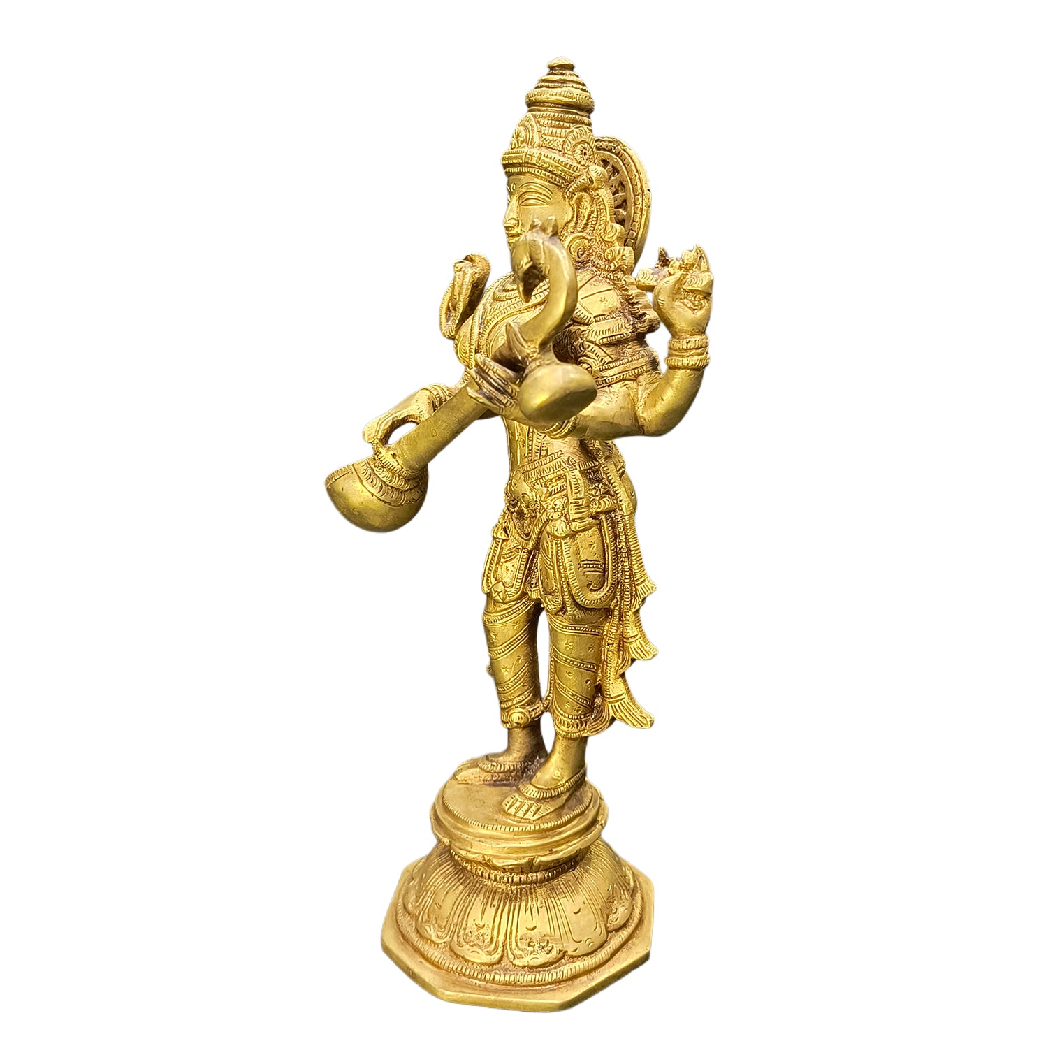 Grace your space with the divine brilliance of the Handmade Brass Saraswati Standing idol. Revered as the goddess of wisdom, music, and learning, Saraswati is beautifully depicted holding her veena and scriptures, radiating serenity and insight. This meticulously handcrafted idol, made from high-quality brass, captures the ethereal beauty and spiritual presence of the Devi. Her calm gaze and symbolic elements inspire balance between intellectual pursuit and spiritual devotion. A perfect addition to altars, classrooms, or personal study sanctuaries, this idol blesses all who seek knowledge, clarity, and creative inspiration.