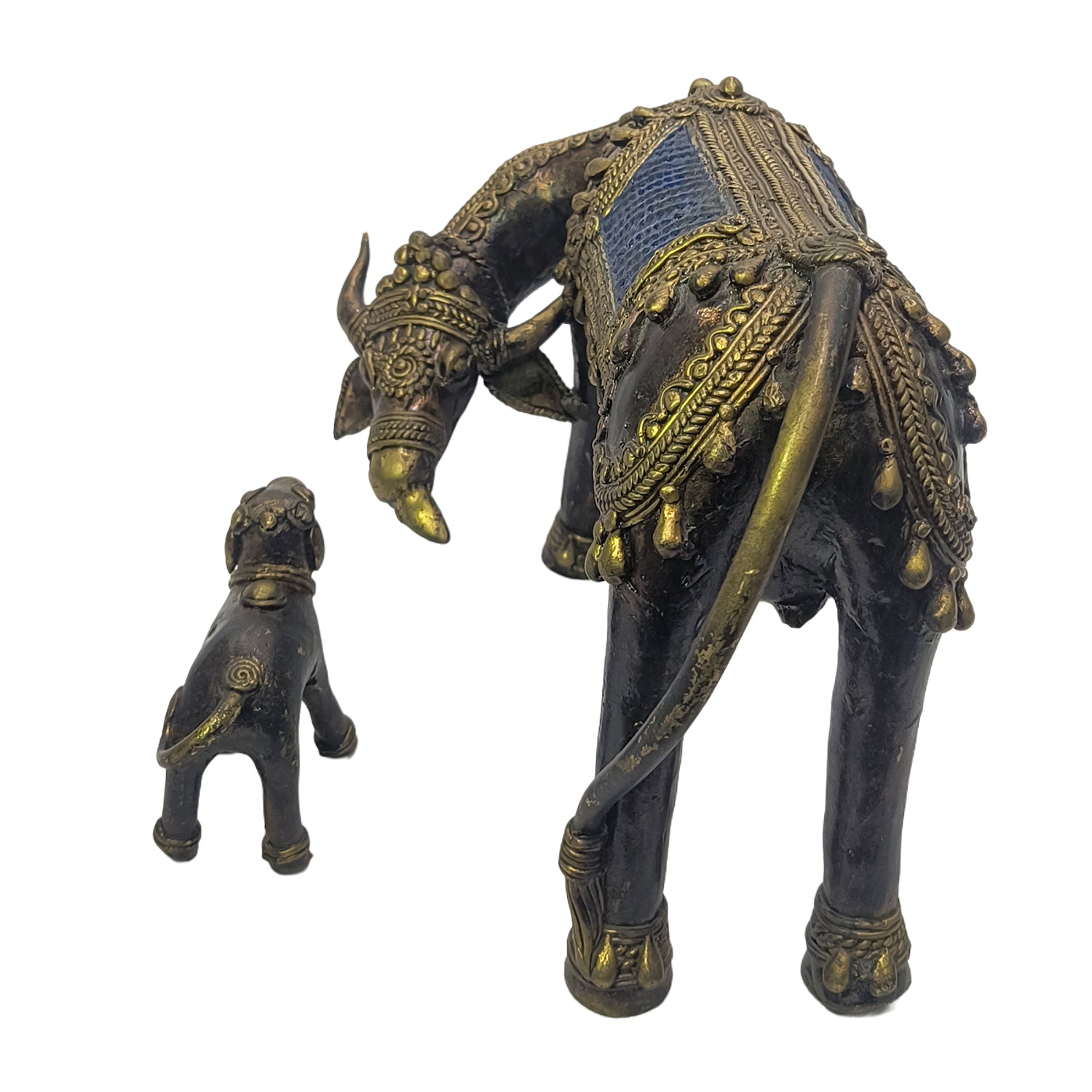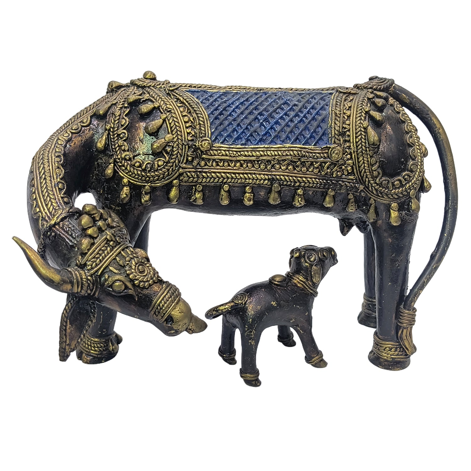 The Handmade Brass Tribal Model Cow & Calf idol is a beautiful and meaningful representation of nurturing, abundance, and familial bonds. Crafted from premium-quality brass, this intricate piece features a tribal-inspired design, capturing the bond between a mother cow and her calf with exquisite detail. The traditional craftsmanship highlights the cultural significance of cows in spiritual and agricultural life, symbolizing prosperity, nourishment, and protection. Ideal for home altars, spiritual spaces, or as a thoughtful gift, this Handmade Brass Cow & Calf from Cholan Arts Emporium adds a touch of elegance and cultural richness, bringing peace, blessings, and positive energy to any environment.