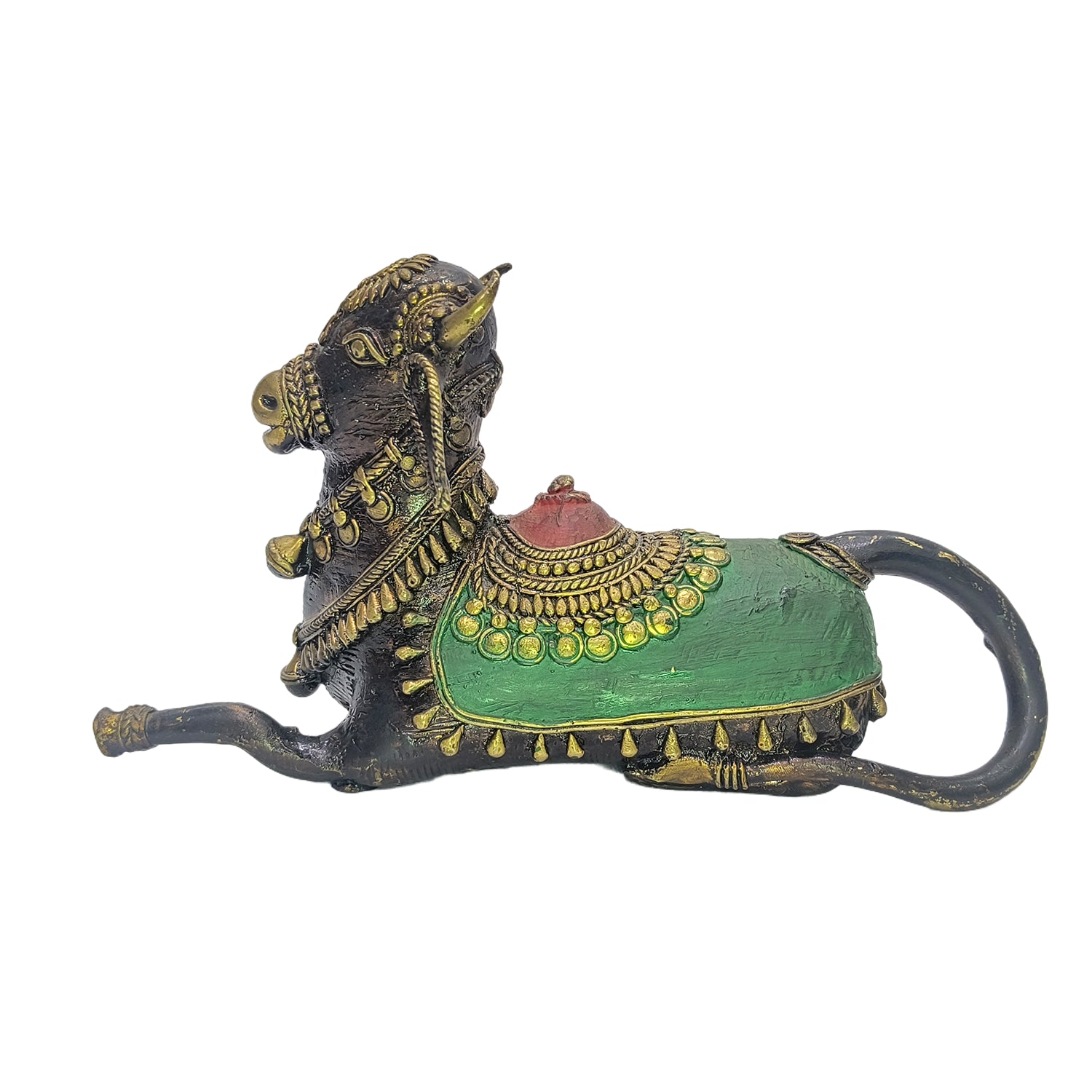 The Handmade Brass Tribal Model Nandhi idol is a powerful and graceful representation of Nandhi, the sacred bull and mount of Lord Shiva, symbolizing strength, devotion, and protection. Crafted from premium-quality brass, this idol features intricate tribal designs, capturing the essence of traditional craftsmanship while reflecting the spiritual significance of Nandhi. Known for his role as the divine guardian, Nandhi embodies steadfastness, loyalty, and inner peace. Perfect for home altars, temples, or cultural collections, this Handmade Brass Nandhi from Cholan Arts Emporium brings a touch of regal elegance and spiritual energy to any environment.