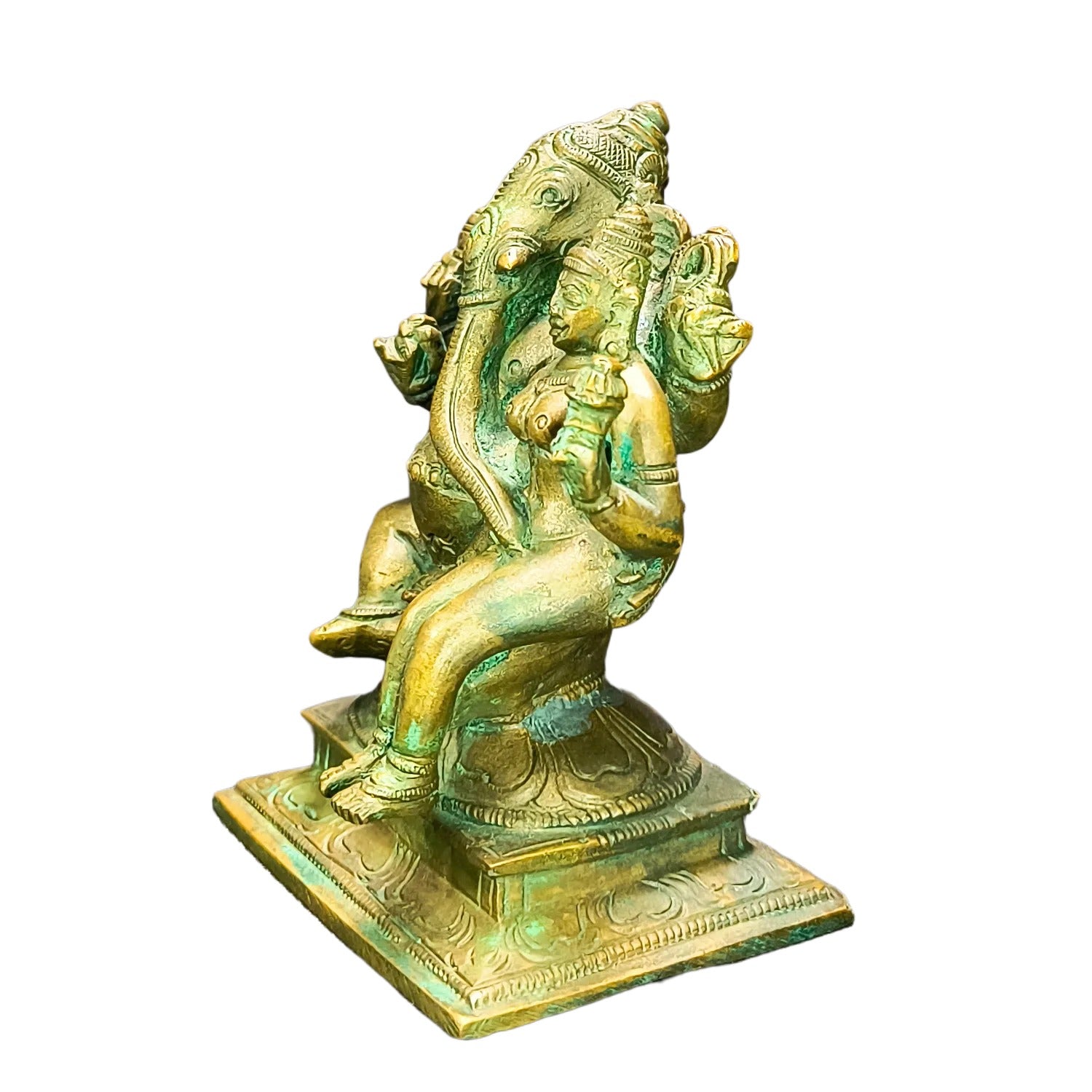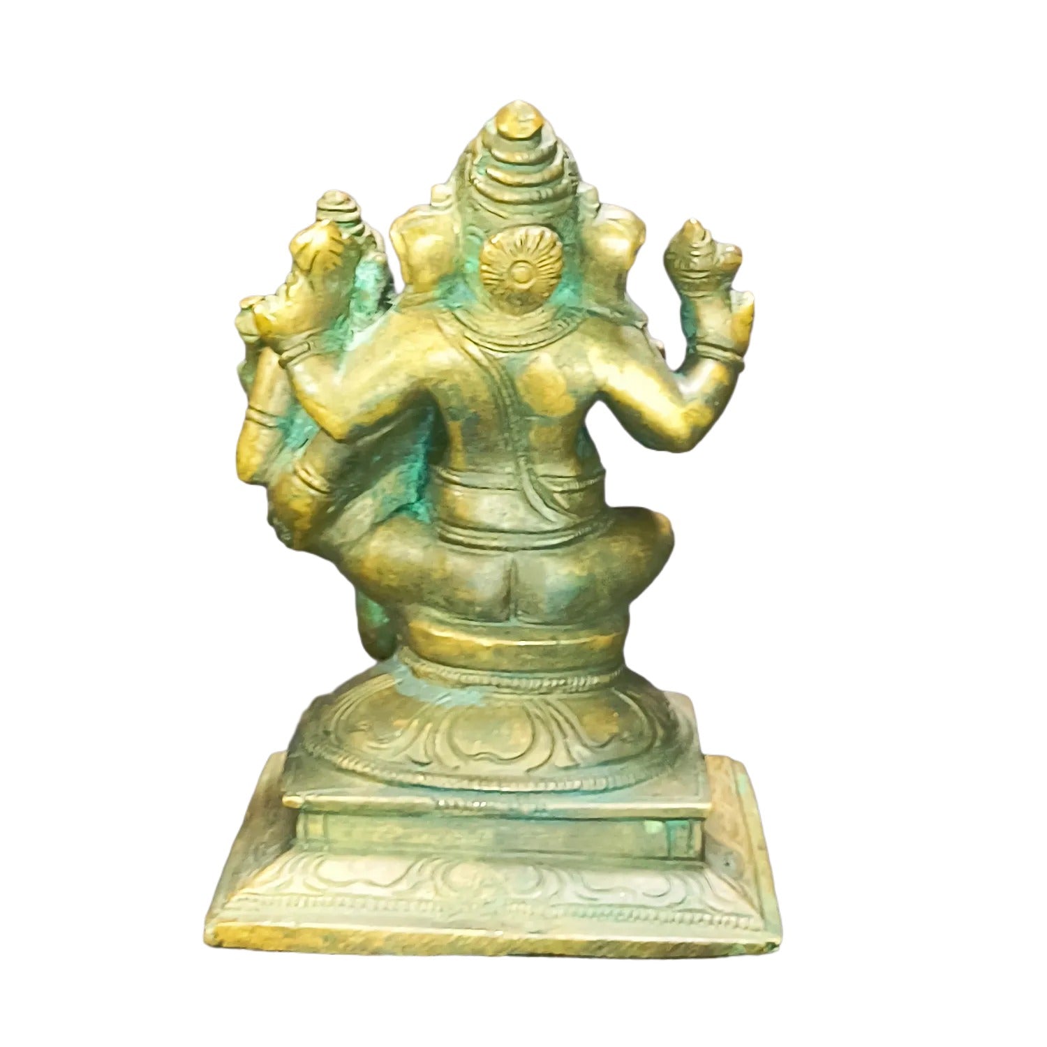Uchista Ganapathy, the sacred tantric form of Lord Ganesha, symbolizes wisdom, prosperity, and divine transformation. This exquisite bronze idol, crafted using the lost-wax technique, captures his celestial presence, often with his consort, representing the union of knowledge and energy. Made from high-quality panchaloha, it radiates spiritual vibrations, making it ideal for meditation spaces and sacred altars. Worshipped for intelligence and success, Uchista Ganapathy removes obstacles and grants deep insight. Every intricate detail, from his sacred ornaments to divine posture, reflects esoteric wisdom, making this idol a rare and powerful treasure.
