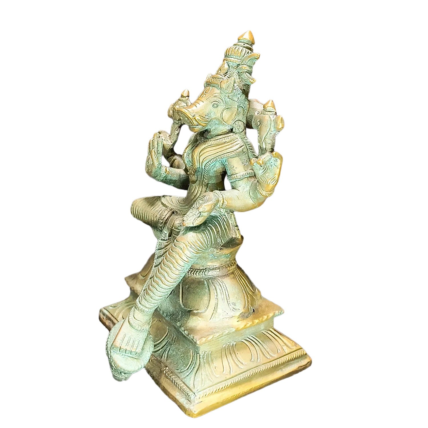 Embrace the protective aura of this Handmade Bronze Varahi Amman statue, a powerful symbol of fearlessness and divine grace. With her divine presence, she blesses devotees with confidence, courage, and wisdom to face life’s challenges. The masterful craftsmanship captures her celestial essence, making this statue an inspiring addition to altars, meditation spaces, or sacred collections. Whether seeking spiritual protection or divine blessings, this statue brings Varahi Amman’s transformative energy into your home, ensuring guidance and success in all pursuits.